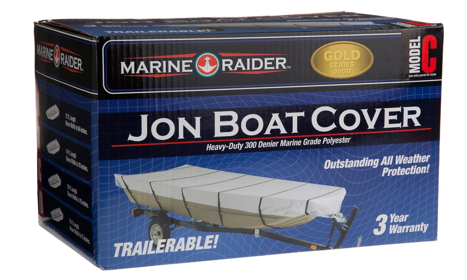 Search by Your Make Model. Marine Raider Model C 300-Denier Boat Cover Fits 16 Jon Boats. This boat cover fits most jon boats up to 14 feet long.